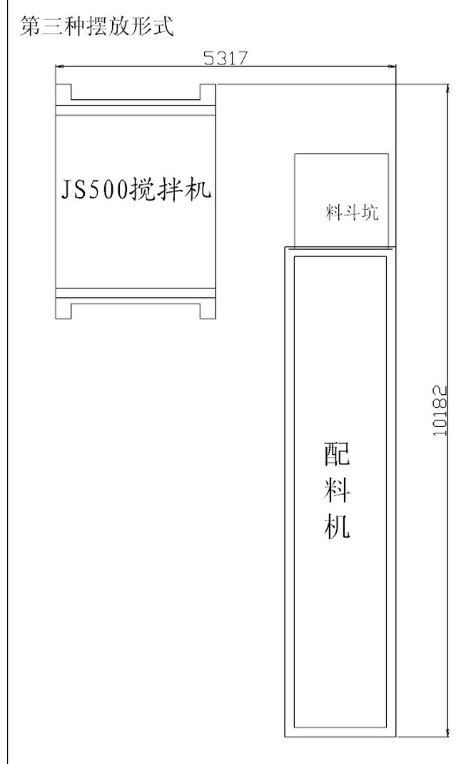 1200-8721-3配料机配500搅拌机第三种摆放占地面积
