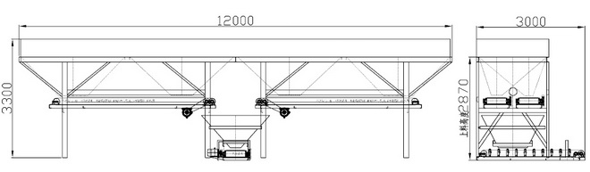 该配料机采用两仓二合一结构,便于运输,同时多仓增大储料仓