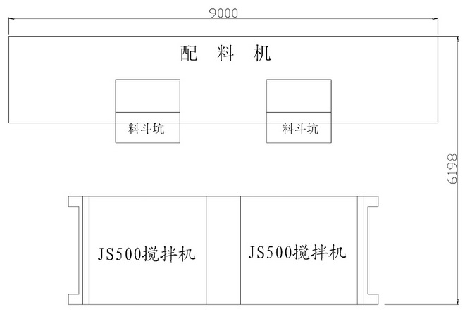 1200S-9028-3配料机配500搅拌机摆放示意图