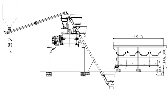 1200-4923-2配料机配750搅拌机第二种摆放占地面积