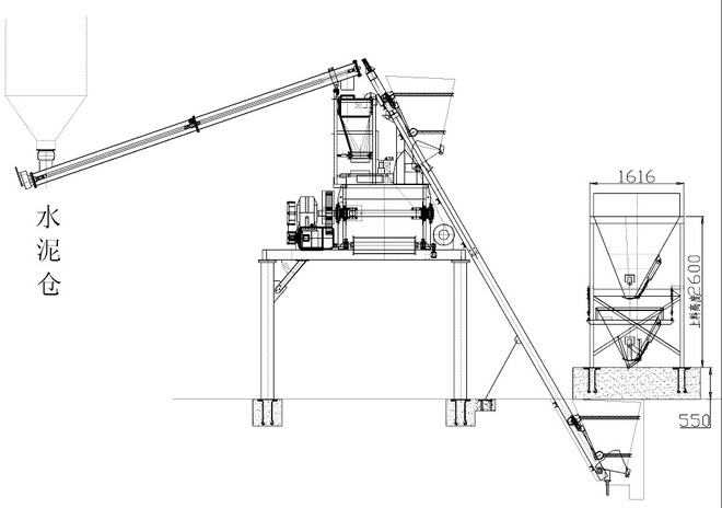储料仓容积大,如果您配单台750搅拌机,两种物料,而且是散装水泥,建议选择此种配料机,这样您可以减低生产成本。