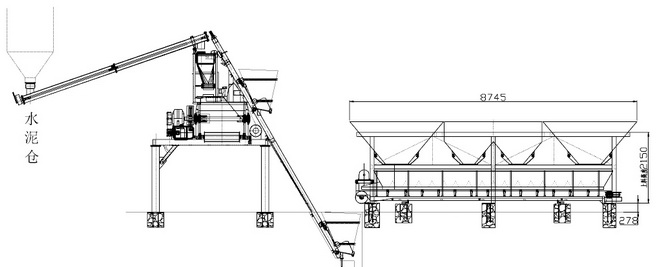 1200-8721-3配料机配750搅拌机摆放示意图