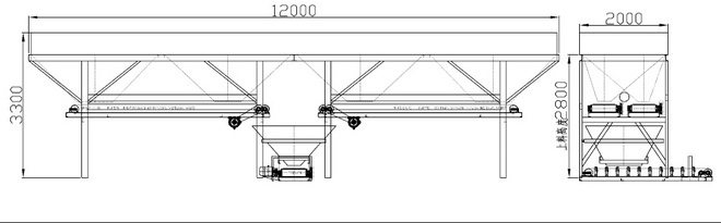 容积。称量斗采用皮带单向送料,如客户采用一台配料机配合两台750搅拌机作业。建议选择二合一四仓双向配料机1200S-12029-4.
