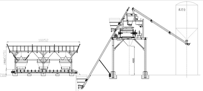 2400-10038-3配料机配1500搅拌机第三种摆放占地面积