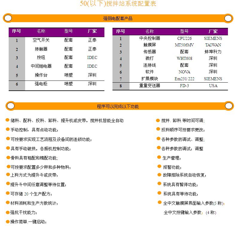 50(以下)搅拌站系统配置表